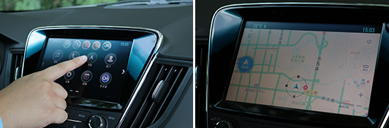 雪佛兰科鲁泽除两款入门车型外,其余车型均配备了8英寸中控屏幕,内部搭载了MyLink+智能互联系统,除了支持蓝牙、导航、语音识别外,还支持百度Car-Life和苹果Car-Play功能。整个操控过程中,系统运行流畅没有出现任何卡顿现象。