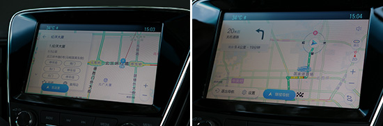 车载导航配备的是高德导航,点击屏幕左上方的“导航”标识,便可进入导航界面。进入后点击左侧目的地后,便可输入自己想去的地址,输入时支持拼音和手写两种方式,汉字识别准确,整体操作流畅。输入地址后,导航还支持地址联想功能。点击目的地开始导航后,车载导航提供了多条路径规划,包括避开拥堵、不走高速和高速优先等。但遗憾的是,导航信息不能映射到仪表盘显示屏中。