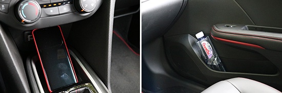 雪佛兰科鲁泽全车储物空间(除杯架外)总数量共计11个,前后车门板拉手采用了封底式设计,可以当作储物槽使用,但内部容积较小,放置手机的话在开关车门时会有滑落的风险。中控台下方的储物槽表现均较为一般,但内部有橡胶做衬底,可有效防止物体滑落。副驾手套箱内部空间表现不错,放入水瓶后还可放置多种资料,且下部还配有雨伞槽,可防止雨伞上的水洒在车内。需要吐槽的是,后排除了门板和储物袋外,并没有过多的储物空间,如果能加上后排杯架以及储物格的话,表现会更加完美。