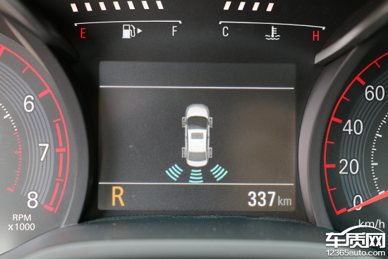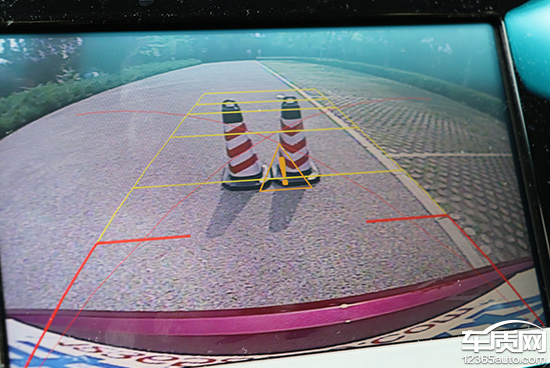 倒车影像系统显示效果清晰,镜头畸变较小。辅助线通过用不同颜色示意距离,且还能随方向盘转动显示轨迹。当接近物体时,屏幕还会在物体周边加以叹号提示驾驶员注意。在仪表显示屏上还配有雷达显示功能,与倒车影像搭配使用更便于驾驶者对障碍物与车身尾部之间的距离进行掌握。