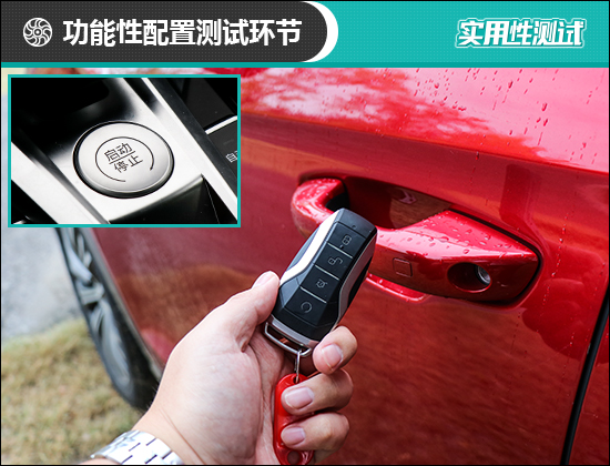 测试车辆前车门均配备了无钥匙进入功能,采用按键式设计,简单实用。按键的按压手感比较硬,反馈并不清晰,不过由于车辆后视镜带有锁车自动翻折功能,所以日常使用不太容易出现误操作。解锁和落锁的过程比较顺畅,实测过程中并未出现失灵或是卡顿现象。