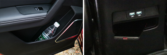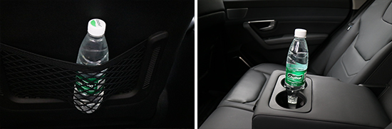 后排储物空间也比较丰富,除了前排扶手箱后侧的储物槽以外,门板储物槽以及前排座椅背袋都能用于储物。中央扶手带有连通式设计的杯架,内部带有限位器,细节设计非常到位。