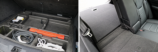 后备箱采用电动尾门,车内以及车外都能够开启,十分方便。第二排座椅支持比例放倒,放倒后能够与后备箱地板形成纯平的储物空间,此外地板下方还设计有隐藏的储物槽,非常实用。比较遗憾的是作为一台SUV车型,比亚迪宋Pro DM后备箱内并未设计锚点。其实不仅是宋,在此前测试过的比亚迪元车型上,后备箱内也都没有设计锚点。