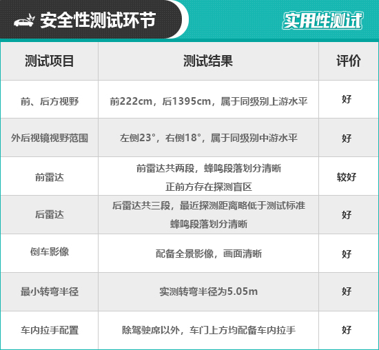 在车辆前、后方视野测试中,车内所有座椅均已调整至最低状态,所测出的数据与驾驶者正常使用时会存在一些偏差,仅供参考。