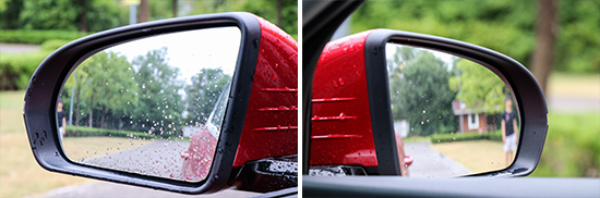 比亚迪宋Pro DM并未配备双曲率镜片,不过实测左侧23°,右侧18°的可视角度也还算令人满意。新车搭载了并线辅助功能,所以配置方面也在一定程度上弥补了后视镜视野偏小的问题。