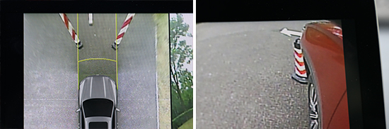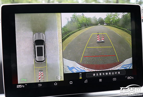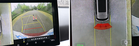 比亚迪宋Pro DM配备了360度全景影像,除了可以观察到后方影像外,还提供了全景的俯视观察角度,非常实用。倒车影像画面清晰度中规中矩,辅助线能随方向盘转动而改变轨迹,实用性表现令人满意。
