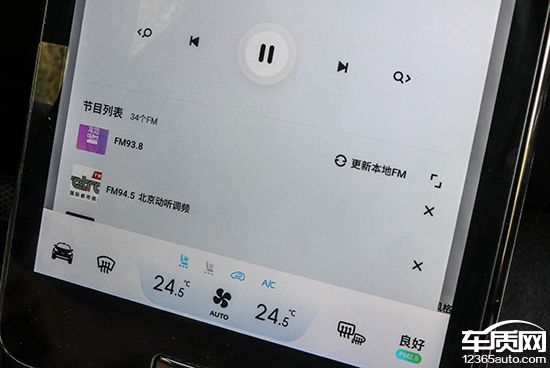 小鹏G3内饰标配15.6英寸中控屏,整个中控区域被这块屏幕占据,显示效果还算令人满意。车载系统偏智能化,以白色界面为主体背景,触控反应非常流畅,上手操作轻松。在顶部菜单栏音乐图标的界面中,点击“FM电台”打开收音机功能。手指旋转虚拟拨盘调节频道,或是点击播放/暂停键两边的快速播放按键,而旁边的两个虚拟按键用于自动搜索频道。底部是节目列表,收藏着喜爱的频道。