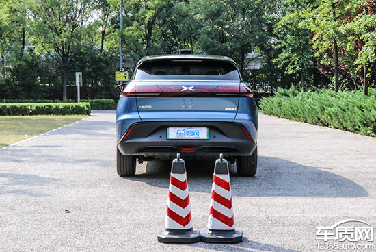 在后方视野测试中,依旧将桩桶固定摆放,随后移动车辆直至可以观察到桩桶上沿为止,所测得的距离为1282cm,测试成绩依旧出色。小鹏G3后排中间没有配备头枕,后风挡下沿也没有任何凸起,后方视线不会被遮挡。