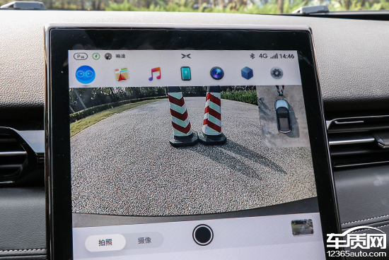 小鹏G3配备360度全景影像功能,实际体验不错,屏幕分辨率及色彩显示都令人满意。系统提供倒车影像和360度全景影像模式,倒车影像配有动态辅助线,辅助驾驶者判断车辆动向。使用360度全景影像功能,系统以分屏的形式显示车辆俯视、车身两侧实景。另外,利用3D车型动画显示周围实景,彻底无死角。当车辆前后距障碍物越近时,系统会动态标注距离,并显示“停车”来告知驾驶者。