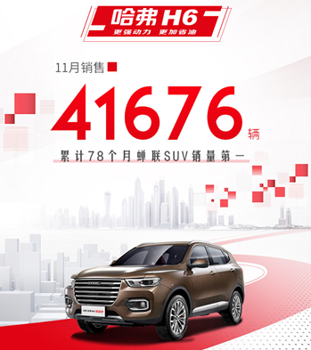 令中国人骄傲的还不止华为,在汽车领域,作为SUV行业的领导品牌,哈弗11月销量再创新高,总销量达到83378辆,国民神车哈弗H6更是一举斩获41676辆,累计78个月荣登销冠之位,单车销量即将突破300万,创造了中国SUV“火箭速度”,足以令途观/CR-V自愧不如。