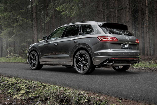 途锐ABT版在外观方面并没有进行大刀阔斧的改动,而是将原有的大量镀铬饰条更换为高光黑色,从而营造出强烈的运动氛围。同时,ABT还为途锐专门定制了极具力量感的22英寸五辐铝合金轮圈,并提供黑色和灰色两种颜色供选。