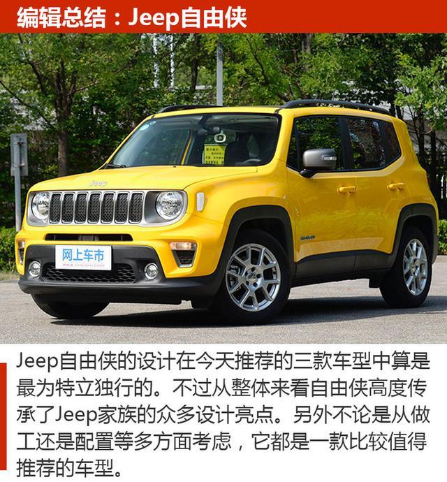 总结:以上这三款车型就是今天我们为大家所推荐的。其实三款车型各有优势,如果是一个在追求个性的同时又不希望过于标新立异,那么现代ix25是比较合适的一个选择;如果对于个性的需求大于求同,那么全新一代傲跑显然更加合适;当然了,如果你是一个比较纯粹追求个性的消费者,那么辨识度极高的Jeep自由侠你值得拥有。