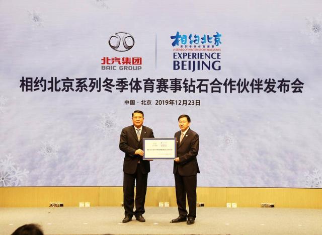 12月23日,相约北京系列冬季体育赛事钻石合作伙伴发布会在北京冬奥组委园区举行,北汽集团等五家企业成为相约北京系列冬季体育赛事钻石合作伙伴。北京市副市长、北京冬奥组委执行副主席、相约北京组委会执行副主席张建东,北京冬奥组委专职副主席兼秘书长、相约北京组委会副主席兼秘书长韩子荣等领导出席发布会。张建东向五家企业颁发相约北京系列冬季体育赛事钻石合作伙伴铭牌。北汽集团党委书记、董事长徐和谊代表北汽集团接受铭牌。