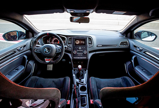 梅甘娜RS Trophy-R内饰基本延续了普通版车型的设计,更换了小尺寸中控屏并取消了第二排座椅,降低车重的设计也是为了提升车辆的动态表现。
