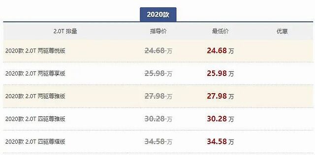 动力方面,新车全系搭载2.0T+9AT的动力总成,其中2.0T发动机最大功率为241马力,最大扭矩350N·m。此外,该发动机还拥有闭缸技术,可以在一定程度上节省燃油和减少排放污染。