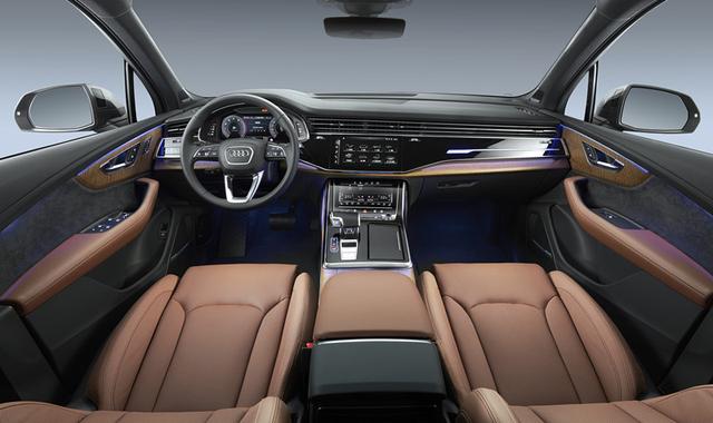 与外观一样,全新奥迪Q7的内饰造型同样优雅简约。从设计层面,家族最新的三屏设计如约而至(分别为12.3英寸全液晶虚拟驾驶舱;上方10.1英寸触控式全液晶中控屏;下方空调区域8.6英寸触摸显示屏),横贯式的空调出风口配合黑色钢琴烤漆的中控面板,显然更符合当下消费者推崇专精、简约主义的价值取向;从体验来看,全新MMI信息娱乐系统以及30余项驾驶辅助系统,甚至奥迪还细心搭配了冬夏两种不同芳香的香氛系统,即便在车内也可以拥有五星级酒店调制香氛的体验。