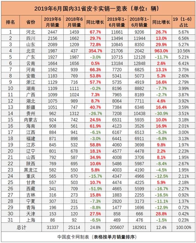 对于皮卡的解禁,这无疑又向前迈进了一大步。而最直接的表现,就是2019年1-6月皮卡销量数据上。