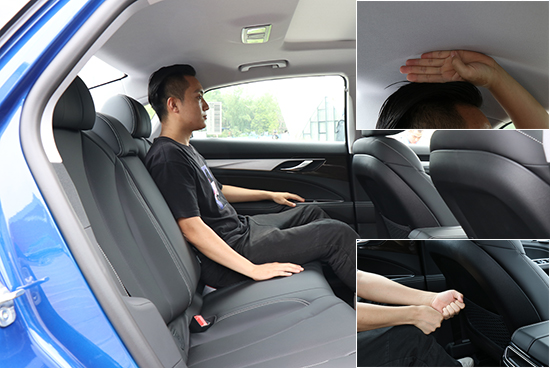 乘坐空间方面,身高为175cm的体验者进入前排,调整好座椅后,头部拥有一拳余量。保持前排座椅不变,体验者来到后排,此时头部拥有四指余量,腿部拥有两拳有余,表现不错。