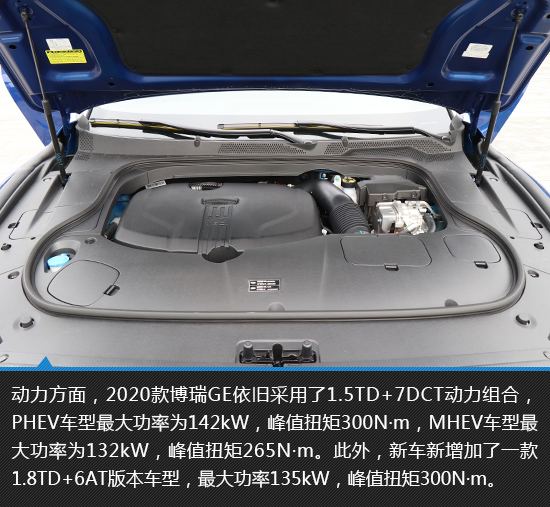 注:2020款吉利博瑞提供1.5T插电混动车型(PHEV)和1.5T轻混车型(MHEV),新增加一款1.8T+6AT燃油版组合,此次实拍车型为1.5T PHEV版本。