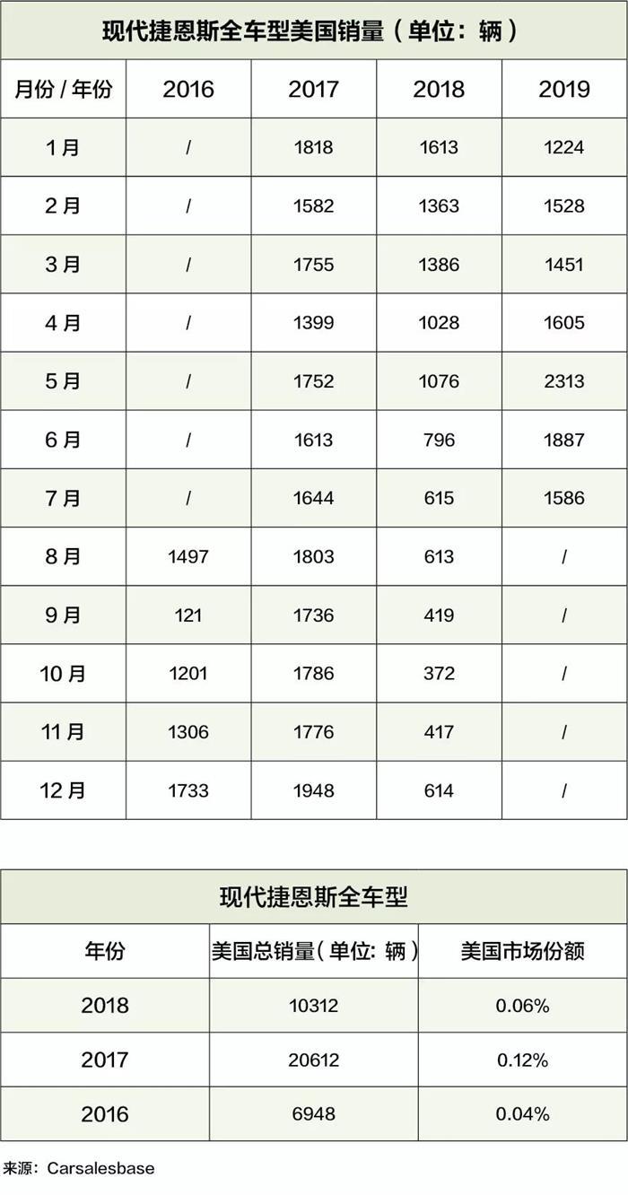 在美国,捷恩斯在最初登陆市场时,采用的是与现代汽车同网销售的模式,虽然品牌高度受到了一定影响,但借力现代的方式让其取得了不错的市场表现,2017年销量甚至超过了2万辆。