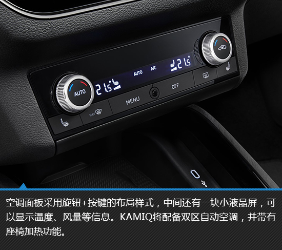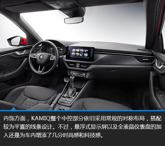 虽然以目前主流的眼光来看,KAMIQ的内饰设计并不出众,但就斯柯达品牌本身而言,不得不说KAMIQ的内饰还是非常时尚的。