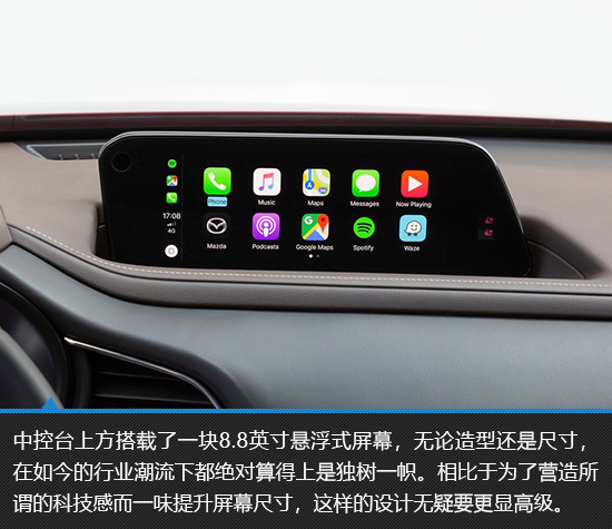 马自达CX-30的内饰设计与不久前上市的全新马自达3相似度极高,细节和布局基本都保持了一致。全新的内饰设计体现了马自达独立思考的态度以及坚持,并没有简单的迎合潮流,盲目跟风。如今,全液晶仪表盘以及大尺寸中控屏的组合,仿佛已经成为了评价汽车内饰是否具备科技感的评判标准,不过这样的手法我认为并不高明。对此,马自达给出了不同的答案,单论硬件配置来说,CX-30也配备了液晶仪表以及中控屏,但通过设计融合所呈上的这份细腻与精致感,相对于简单堆料的大部分竞品车型可以说是高下立判。