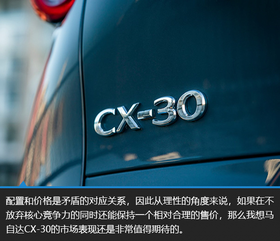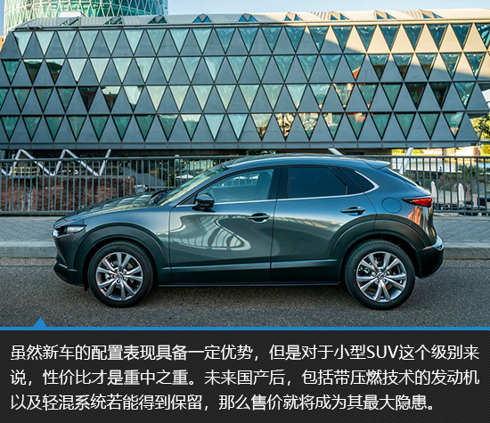 马自达CX-30具备优秀的外观内饰设计,另外在配置层面相比竞品也能具有一定优势,再加上压燃技术发动机以及轻混系统的加持,新车的综合产品力在小型SUV领域堪称“恐怖”。不过,出色的产品却并不意味着就可以轻而易举的在销量上取得成功,价格因素才是关键。马自达CX-30定位主要面向家用群体,价格是非常敏感的话题,未来引入国内后,不排除会效仿全新马自达3那样针对动力部分进行调整。如果真是如此,这样的举措我认为也无伤大雅,毕竟保持出色的性价比才是关键。