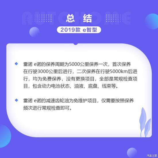 结语:尽管每隔5000公里的保养间隔略显频繁,不过好在雷诺 e诺的常规检查费用还是比较低廉的,而空调滤芯、制动液和防冻液的材料与工时费用也都比较合理,再加上前两次保养免费以及免维护的减速齿轮油;雷诺 e诺在保养成本方面与同级别中国品牌车型相比,并不会有明显的提升。算上较低的能耗水平和不高的保费,雷诺 e诺的整体用车成本与车价一样,都属于比较亲民的水平,并不会给车主带来过多负担。
