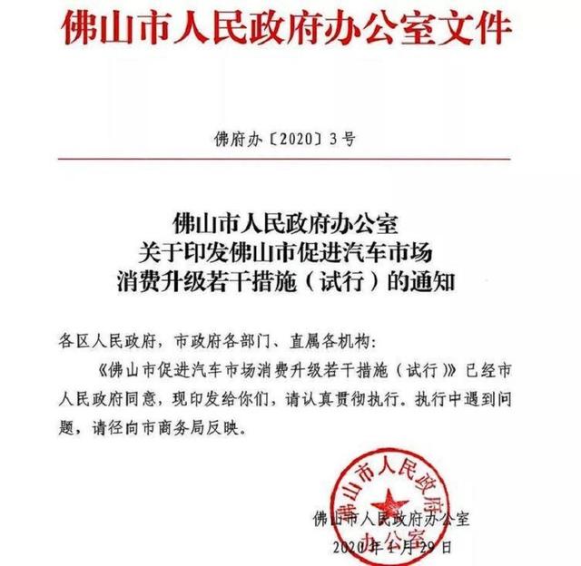 而事实上,在这之前,已经有部分省市已经开始“刺激”汽车消费市场了。如1月29日,广东佛山市政府就发布了《佛山市促进汽车市场消费升级若干措施(试行)》的通知,其中就提到“鼓励‘国六’标准排量汽车消费、简化购车登记手续等7项服务措施。其中最为大家关注的有三条信息:佛山号牌车主凭旧车售卖发票或汽车报废注销证明购买新车,每辆给予3000元补助;对同一消费者一次性购买5台及以上的大、中、重型客运、载货汽车(车辆单价不少于50万元),每辆车给予5000元补助;鼓励消费者购买新车,每辆给予2000元补助。面对疫情,反应如此迅速,不得不说当地政府还是具有非常敏锐的市场嗅觉和前瞻性的。