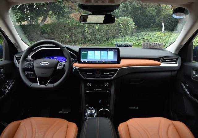 而锐际内饰设计较为简洁,辅以恰到好处的镀铬饰条装饰,其全系配备12.3英寸触控屏,并内置SYNC 3车机系统,除了最低配的悦享款之外,其余车型均配备12.3英寸全液晶仪表,整体科技感出众。此外,锐际还配备抬头显示、全景天窗、自动启停、限速识别、车道辅助保持、自动泊车、自适应巡航、盲点监测、预碰撞制动系统、全景影像等多项配置。
