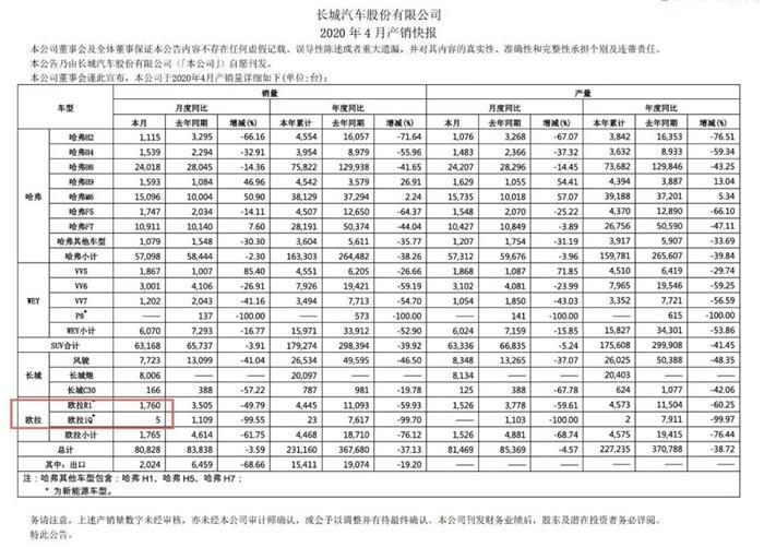 据长城汽车日前公布的4月产销快报来看,包括哈弗、WEY、长城、欧拉品牌在内,共有三款新能源车型——WEY P8、欧拉R1和欧拉iQ,三款车型今年4月的销量共计1765辆。值得一提的是,WEY P8目前处于停售状态。