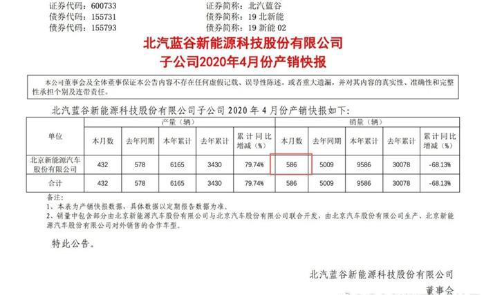 北汽新能源今年4月销量成绩为586辆,是的,你没看错,就是三位数。 这一销量表现以“暴跌”来相容一点都不为过,对比北汽新能源去年同期销量,为5009辆,同比骤减88.30%。 北汽新能源今年前四个月累计销量不足万辆,仅为9586辆,同比大跌68.13%。