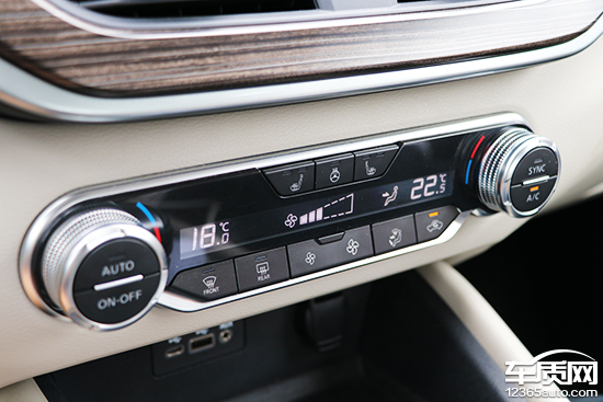2019款天籁配备了双区自动空调,空调面板采用旋钮+按键的控制方式,旋钮转动时段落清晰且略带阻尼感,中间还设计有小液晶屏,可以显示左右独立温区的空调温度以及风向风量等信息。
