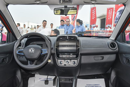 风行T1 EV沿用家族内饰,显得很朴素,中控台使用硬塑料,呈现的质感非常一般。中控配备大尺寸液晶屏,多媒体区域与空调出风口基于一块亮黑烤漆面板,空调控制区设计非常传统。