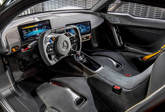 除1.6T V6涡轮增压发动机之外,AMG ONE还搭载了4台电动机,其中一台最大功率108马力的电动机主要负责维持涡轮增压器的运转,后部的一台电动机最大功率可达163马力,与发动机曲轴相连,参与动力输出。前轴配备两台电动机,前轴后侧还配有一块重量达100kg的锂电池,纯电状态下可以行驶24公里。