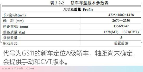 根据产能来看,gs11系列将是未来凯翼汽车的主力产品,规划年产能达到7.5万辆,占到整个工厂的一半。新车将会在明年发布,定位a级轿车,车身尺寸为4725×1802×1478mm,与艾瑞泽gx、比亚迪秦pro、长安逸动以及传祺ga4等车相近。根据产品定位来看,该车预计会采用1.5l自然吸气以及1.5t涡轮增压发动机,传动系统匹配手动或cvt变速箱。此外,gs11系列也会推出纯电动和插电混动版。