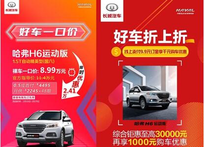 为了减少群众出行和解决必要用车需求,哈弗还推出线上购车、“一口价”等购车优惠活动。其中,哈弗H6运动版综合钜惠至高3万元,并且在“一口价”活动中,仅需0.5成首付和2000元左右的月供就能购得哈弗H6运动版,极大程度减轻了用户经济压力,驾车出行也给民众购买生活物资提供了一份安全保障。