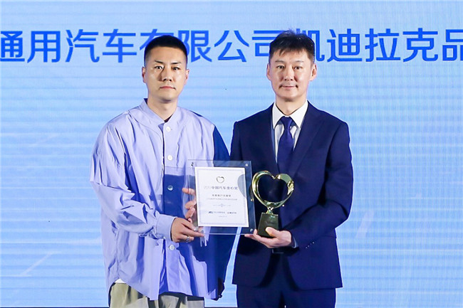 腾讯汽车主编 马腾(左)为上汽通用汽车有限公司凯迪拉克品牌售后服务经理 李铭(右)颁奖
