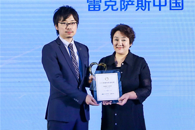 寰球汽车副总裁 恽泽(右)为雷克萨斯中国顾客服务地区运营部室长 曹大勇(左)颁奖