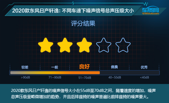在本期《数据说话》中,2020款东风日产轩逸在实际道路平顺性和模拟越野路面平顺性两项测试中表现均十分出色。在城市道路行驶中,底盘整体质感不错,悬架对路面颠簸的处理也比较干脆利落,展现出一款合资家用轿车应有的水准。而在模拟越野测试中,悬架对于非铺装路面的表现令人出乎意料,整体滤振性能非常不错。从测试结果来看,全面升级后的东风日产轩逸在噪音抑制以及隔音性方面的表现同样值得肯定,给驾驶员营造了相对安静舒适的驾驶环境,当然在高速噪音控制方面也还有提升空间。综合来看,2020款东风日产轩逸在本期测试中,获得“优良”评价。