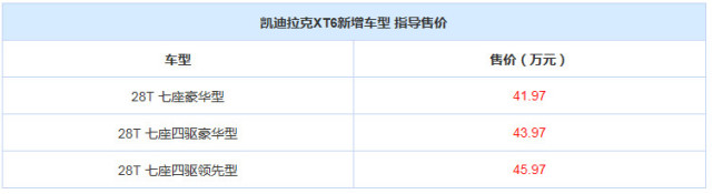 『配图为凯迪拉克XT6 28T六座四驱豪华版车型』
