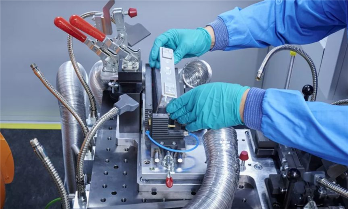 宝马电芯技术中心原型电芯生产中的外壳安装工位